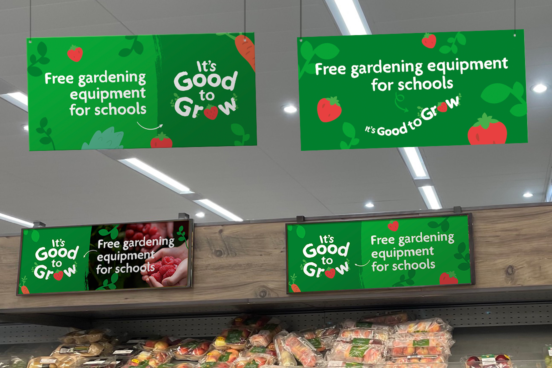 All branding and rollout of assets, both in store and in schools for this school promotion. Shoppers collect points for their chosen school to redeem for gardening equipment.