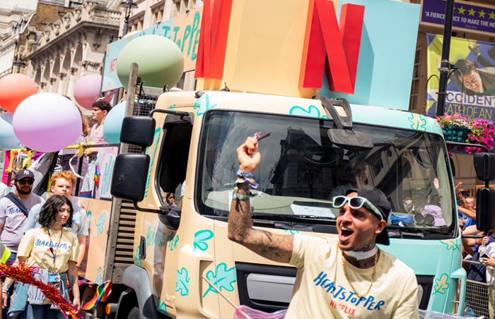 To launch the new series of Netflix show Heartstopper, branding and designs for a float and parade at London Gay Pride event.